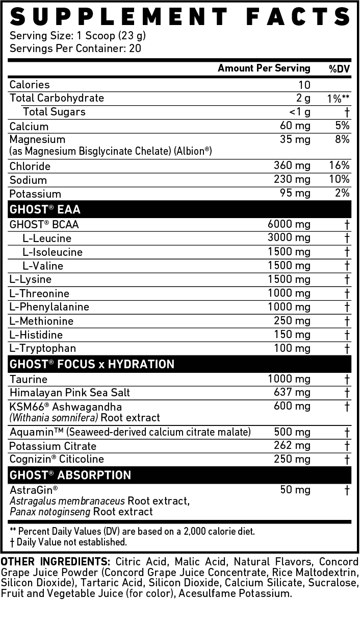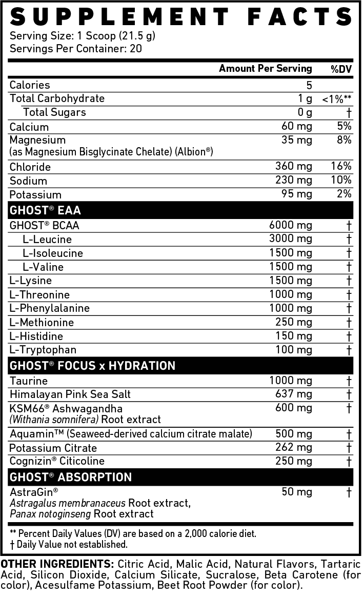 Mix each scoop (serving) of GHOST® INTRA with 14-16 oz of water or beverage of choice. Vary amount of liquid to taste. Consume during or after exercise on training days or throughout the day as desired.