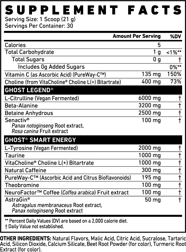 †Compared to original GHOST LEGEND® pre-workout formula.