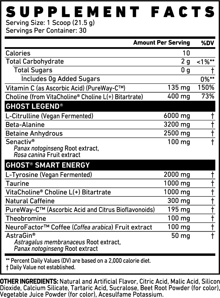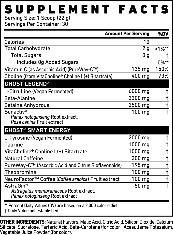 †Compared to original GHOST LEGEND® pre-workout formula.