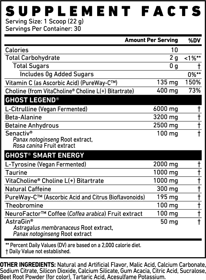 †Compared to original GHOST LEGEND® pre-workout formula.