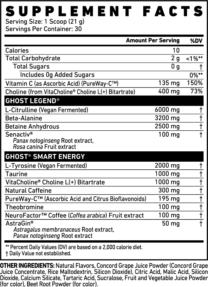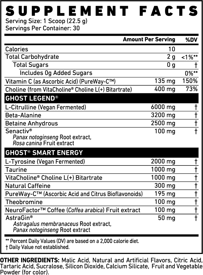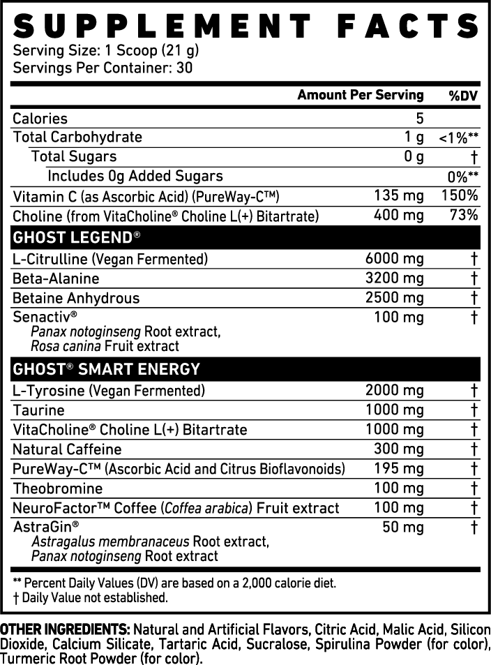 †Compared to original GHOST LEGEND® pre-workout formula.