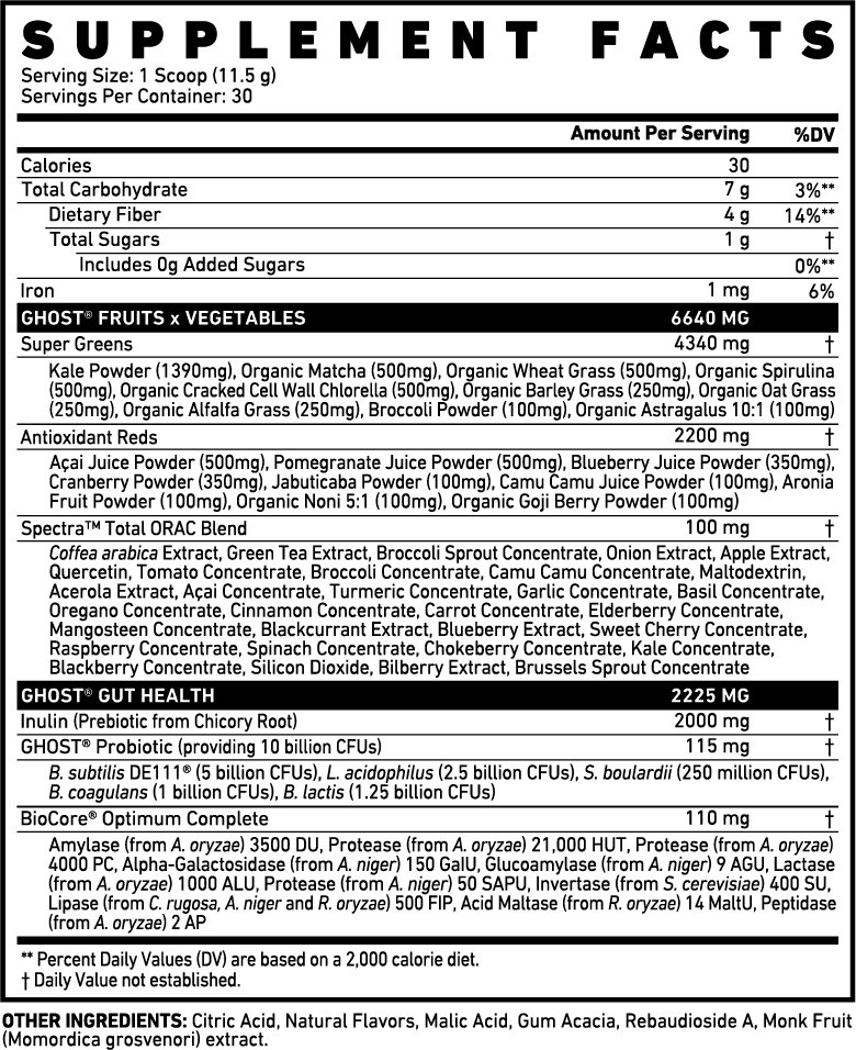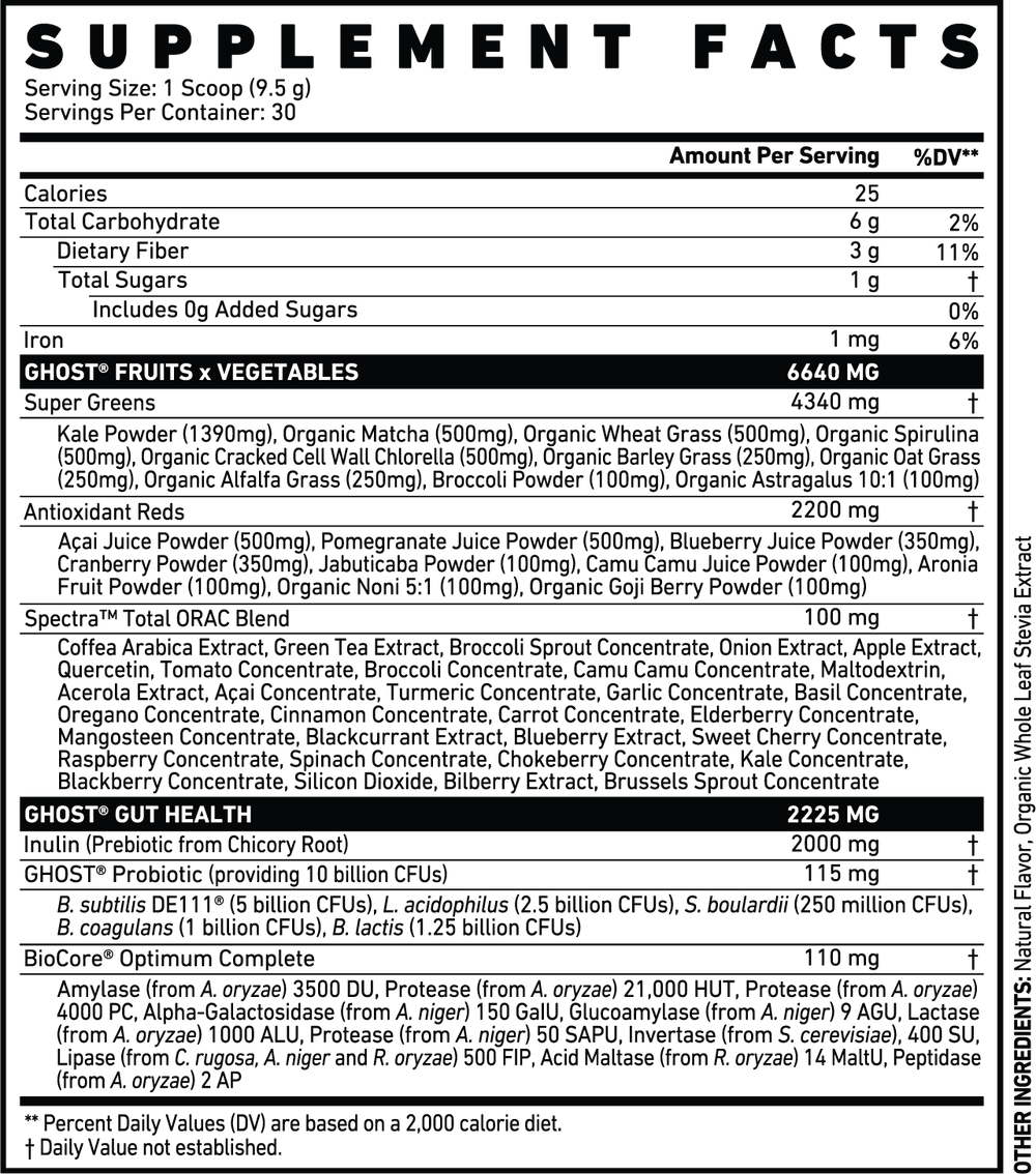 Mix each scoop (1 serving) of GHOST® GREENS with 8-10oz of water or beverage of choice. Vary amount of liquid to taste. Consume daily.